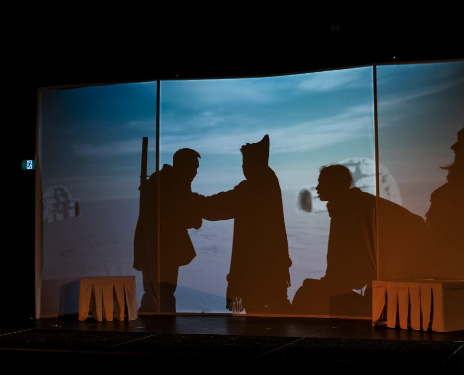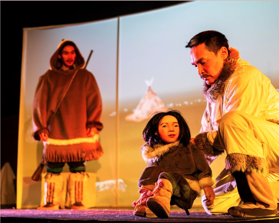 Première pièce d'envergure au Nunavik, ce mandat était profondément touchant à réaliser. Créé dans la communauté de Puvirnituq, il a fallu être très à l'écoute du mode de vie local et de la vision de l'art par la communauté Inuit. Comme la pièce est destinée à être présenté dans les 14 communautés du Nunavik et ce, en avion, j'ai dû faire des choix artistiques en lien avec une logistique efficace. L'achat de tous les équipements a dû être réfléchi en conséquence. La pièce devait être totalement auto-portante techniquement. Gros mandat d'achats et d'aide à la conception de décor. La conception des éclairages a dû être réalisée avec des équipements peu nombreux, mais judicieusement choisis.