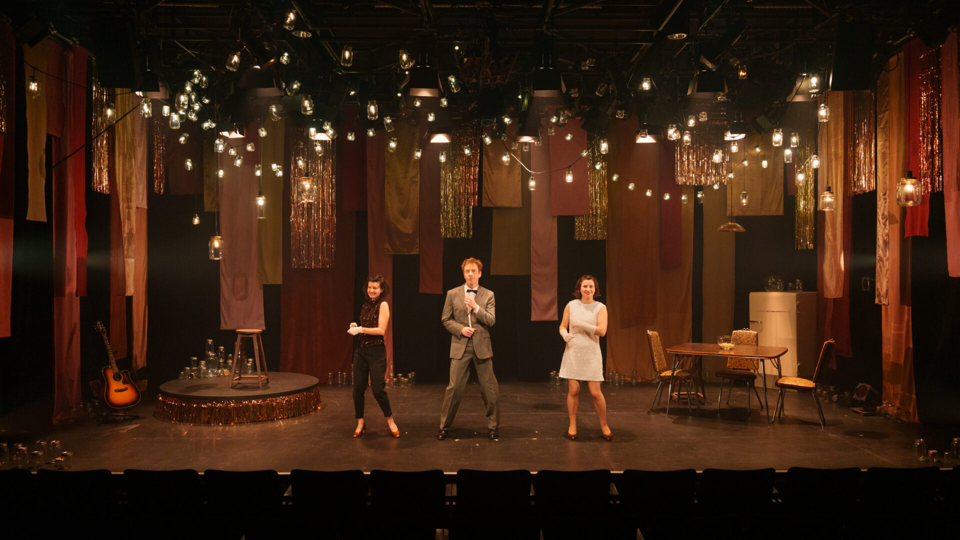 Ce spectacle célèbre sans retenue le théâtre absurde dans toute sa splendeur : une enfilade de numéros courts, éclatés, toujours imprévisibles, mais jamais gratuits. Le trio festif s’amuse brillamment avec la forme et enchaîne les surprises avec une précision chirurgicale qui nous fait rire autant qu’elle nous fait réfléchir, que ce soit sur les rapports sociaux, la condition humaine, ou encore sur la création, le divertissement, le théâtre et la pièce elle-même.